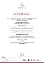 Die vhs Löhne hat ein Qualitätsmanagementsystem und ist nach DIN EN ISO 9001:2015 zertifiziert. Die Einhaltung der Qualitätsstandards wird jährlich durch die Bonner Zertifizierungsgesellschaft CERTQUA (www.certqua.de) überprüft.